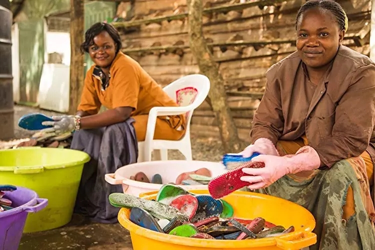 1998年,肯尼亞的環(huán)保主義者Julie Church在看到海洋環(huán)境的惡化之后,感到無比痛心,下定決心一定要幫助當(dāng)?shù)厝烁淖儛毫拥沫h(huán)境。2005年,Julie成立了肯尼亞海洋保護(hù)組織——Ocean Sole。致力于海灘環(huán)境保護(hù),同時也為當(dāng)?shù)氐牡褪杖肴巳禾峁┚蜆I(yè)崗位和穩(wěn)定收入。