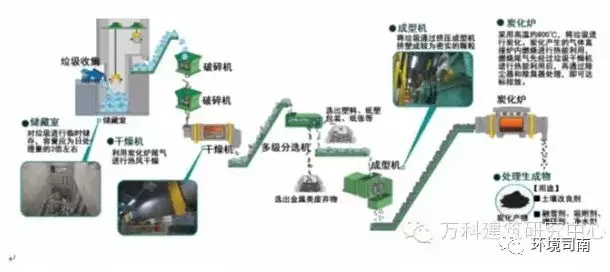 基本過程就是:有機(jī)質(zhì)——快速熱解(炭化)——炭粒+氣體。這一過程無有害氣體產(chǎn)生,什么二噁英、PM2.5都沒有。炭化適宜社區(qū)配備,垃圾減量率高達(dá)75~85%。
