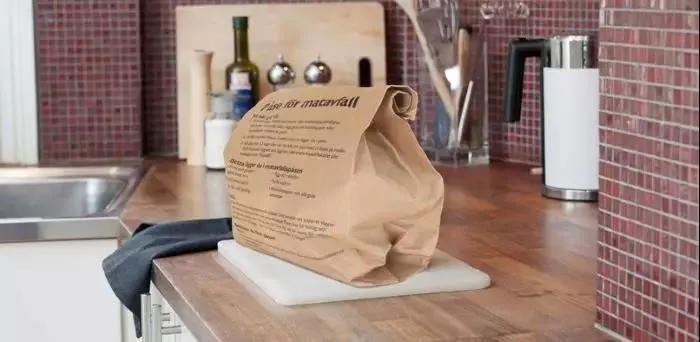 在瑞典,廚余垃圾有垃圾處理公司專門提供的棕色垃圾紙袋,裝滿后在開口處對(duì)折兩次,揭開自粘膠封條可以封起來(lái),然后就可以扔在棕色的垃圾大桶里或者專用的廚余垃圾收集處。
