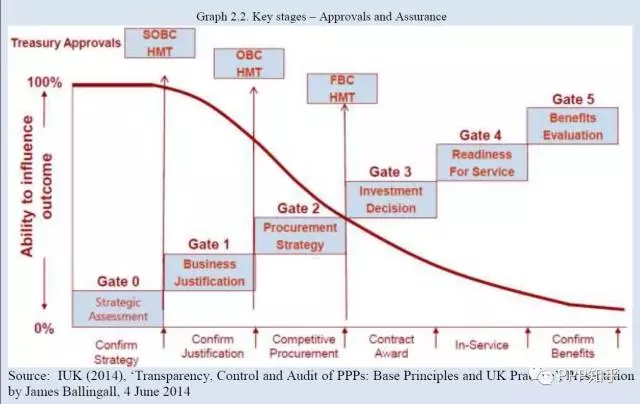 可見,物有所值是PPP項(xiàng)目的核心原則,應(yīng)貫穿在PPP項(xiàng)目實(shí)施的全過程動態(tài)管理中,根據(jù)項(xiàng)目關(guān)鍵要素的變化不斷測算、評估和調(diào)整,特別是項(xiàng)目采購和融資交割后,談判簽約的實(shí)際情況往往與項(xiàng)目準(zhǔn)備時發(fā)生變化,應(yīng)對基于可研報告和項(xiàng)目實(shí)施方案所做的物有所值評估進(jìn)行核算,同時在項(xiàng)目實(shí)施期和結(jié)束后的每個重大變化節(jié)點(diǎn),都應(yīng)開展相應(yīng)的評估工作。英國在PPP項(xiàng)目全過程審查評估中就明確了評估的五個關(guān)鍵關(guān)口(Gate)。