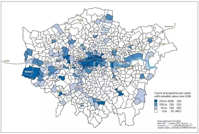 PPP模式可能使項(xiàng)目更加物有所值,公共預(yù)算支出更有效率,但單純依靠政府付費(fèi),財政可承受能力終歸是有上限的。因此,如何挖掘項(xiàng)目本身的商業(yè)潛力和拓展公共支出的來源就顯得尤為重要。大型基礎(chǔ)設(shè)施項(xiàng)目往往具有外部性,可以采用適當(dāng)?shù)姆椒▽⑵渫獠啃б鎯?nèi)在化,來反哺項(xiàng)目本身。橫穿倫敦108公里的伊麗莎白線的總建設(shè)預(yù)算達(dá)148億英鎊,計(jì)劃通過稅收增量融資和開發(fā)基礎(chǔ)設(shè)施費(fèi)的模式來將地鐵帶動的土地和物業(yè)價值升值反饋給軌道項(xiàng)目。一方面,在未來24-30年內(nèi),對該軌道項(xiàng)目收益的價值5.5萬英鎊以上的商業(yè)物業(yè)額外征收2%的商業(yè)物業(yè)稅(BRS-Business Rate Supplement),如下圖所示。