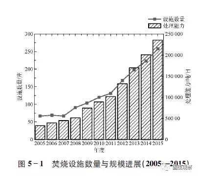 十二五期末共建成焚燒設(shè)施257座,總焚燒處理規(guī)模23.5萬噸/日