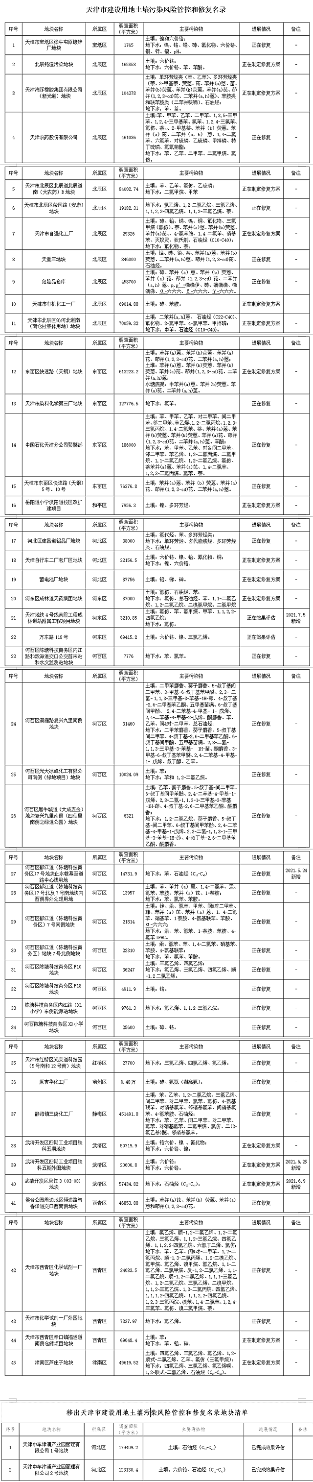 市生態(tài)環(huán)境局 市規(guī)劃資源局關于更新發(fā)布《天津市建設用地土壤污染 風險管控和修復名錄》的通知各區(qū)生態(tài)環(huán)境局、規(guī)劃資源分局: 為貫徹落實《中華人民共和國土壤污染防治法》、《天津市土壤污染防治條例》,加強我市建設用地土壤環(huán)境管理,實行建設用地土壤污染風險管控和修復名錄制度,根據(jù)我市建設用地地塊風險評估和治...