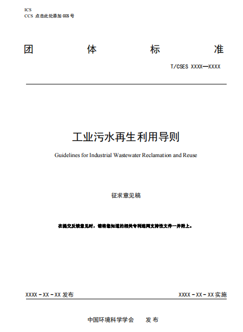 關(guān)于征求團(tuán)體標(biāo)準(zhǔn)《工業(yè)污水再生利用導(dǎo)則(征求意見稿)》意見的函 由我會(huì)組織編制的團(tuán)體標(biāo)準(zhǔn)《工業(yè)污水再生利用導(dǎo)則》已完成征求意見稿,根據(jù)《中國(guó)環(huán)境科學(xué)學(xué)會(huì)標(biāo)準(zhǔn)管理辦法(試行)》的有關(guān)規(guī)定,現(xiàn)公開征求意見。請(qǐng)?zhí)顚懸庖姺答伇?,并?022年7月13前將有關(guān)意見反饋我會(huì)(電子文檔請(qǐng)同時(shí)發(fā)送至聯(lián)系人郵箱)。 ...