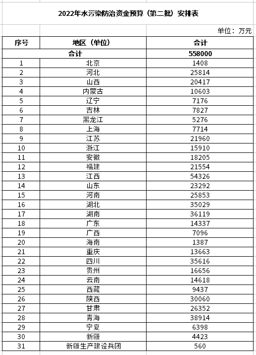 財(cái)政部關(guān)于下達(dá)2022年水污染防治資金預(yù)算(第二批)的通知 財(cái)資環(huán)〔2022〕57號(hào) 各省、自治區(qū)、直轄市財(cái)政廳(局),新疆生產(chǎn)建設(shè)兵團(tuán)財(cái)政局: 為促進(jìn)水環(huán)境質(zhì)量改善,加快推進(jìn)水污染防治工作,現(xiàn)下達(dá)你省(自治區(qū)、直轄市,以下統(tǒng)稱省)2022年水污染防治資金(第二批),用于支持水污染防治和水生態(tài)環(huán)境保...