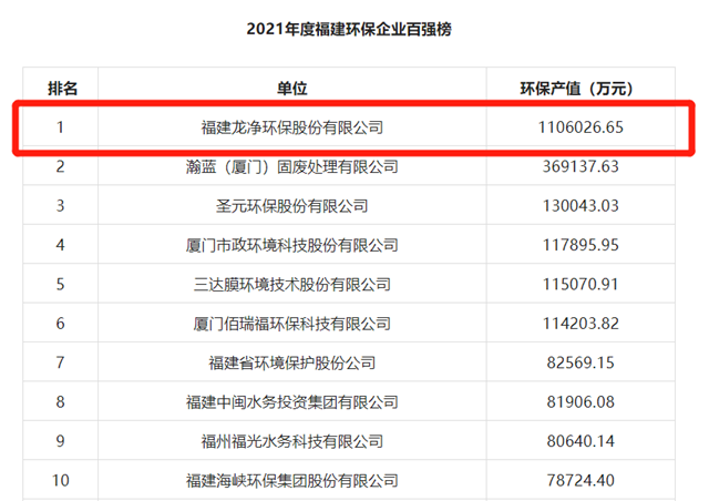 2022年6月6日,福建環(huán)保產業(yè)協(xié)會發(fā)布2021年度福建環(huán)保企業(yè)百強榜名單,龍凈再次榮登百強榜榜首,是全省唯一一家營收超過百億的環(huán)保企業(yè)。 據(jù)悉,福建環(huán)保企業(yè)百強榜是基于2021年度全國環(huán)保產業(yè)重點企業(yè)基本情況調查產生的,是以各單位當年環(huán)保產值為主要依據(jù)。龍凈2021年年報顯示,營業(yè)收入113億元,...