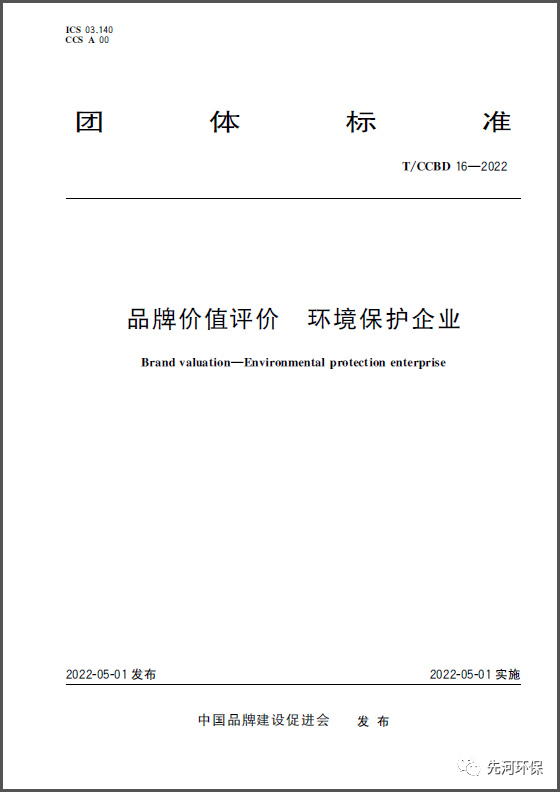 《品牌價值評價 環(huán)境保護企業(yè)》團體標(biāo)準 T/CCBD16-2022正式發(fā)布實施! 2022年5月1日,在中國品牌建設(shè)促進會的指導(dǎo)下,由河北先河環(huán)??萍脊煞萦邢薰镜?5家企業(yè)共同參與并制定的《品牌價值評價 環(huán)境保護企業(yè)》團體標(biāo)準T/CCBD 16-2022于2022年5月1日正式發(fā)布實施。 該標(biāo)準基...