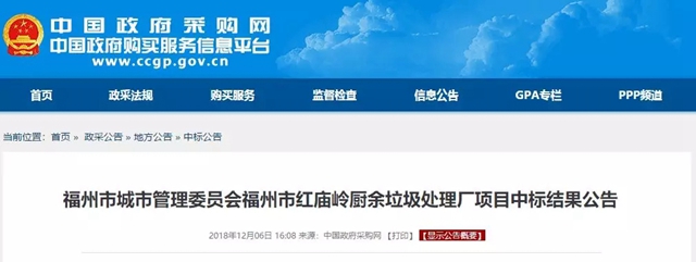 日前,從中國政府采購網獲悉,福建首個廚余垃圾處理PPP項目--福州市紅廟嶺廚余垃圾處理廠項目(以下簡稱福州項目)中標結果出爐,首創(chuàng)環(huán)境控股有限公司聯合體以261元/噸中標價成功將項目攬入懷中。 福州項目是福州市垃圾分類的終端處理設施——紅廟嶺循環(huán)經濟生態(tài)產業(yè)園區(qū)的重要組成部分...