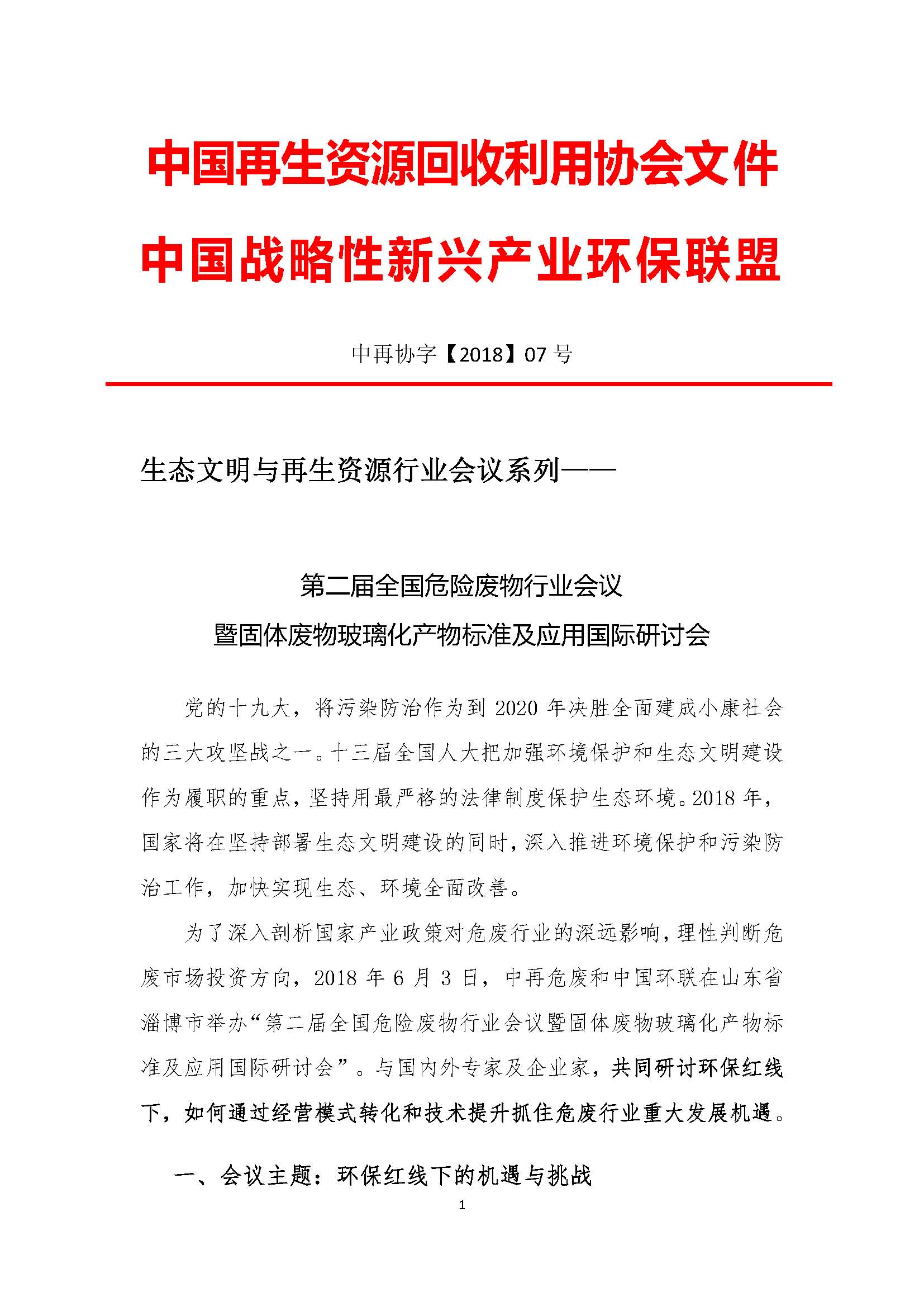 為了深入剖析國家產業(yè)政策對危廢行業(yè)的深遠影響,理性判斷危廢市場投資方向,2018年6月3日,中再危廢和中國環(huán)聯(lián)在山東省淄博市舉辦“第二屆全國危險廢物行業(yè)會議暨固體廢物玻璃化產物標準及應用國際研討會”。與國內外專家及企業(yè)家,共同研討環(huán)保紅線下,如何通過經營模式轉化和技術提升抓住危廢行業(yè)重大發(fā)展機遇。會...