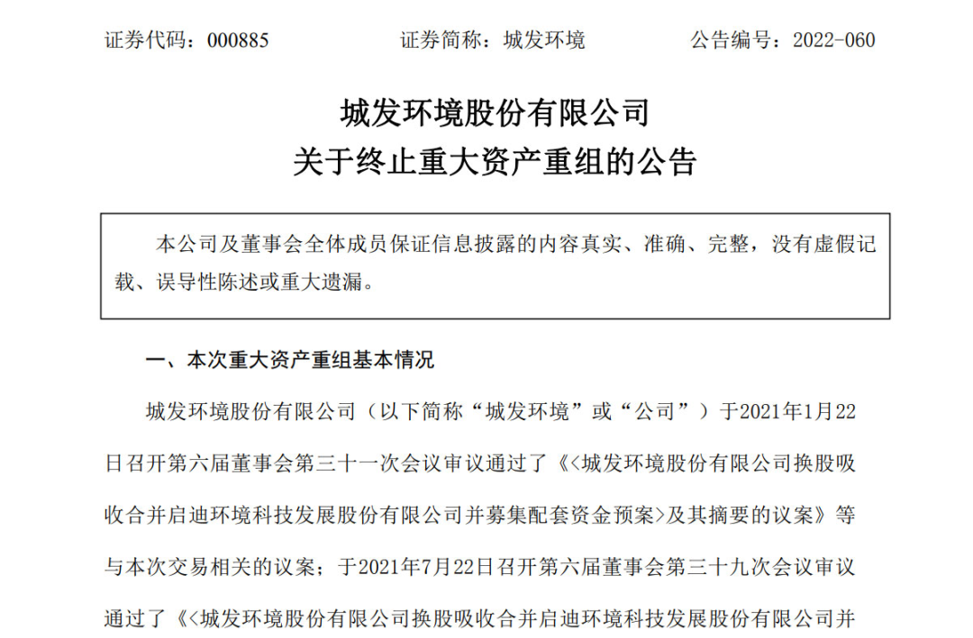據(jù)公告顯示,終止本次重大資產(chǎn)重組的原因是城發(fā)環(huán)境自籌劃本次重大資產(chǎn)重組事項(xiàng)以來,嚴(yán)格按照相關(guān)法律法規(guī)的要求,與交易對(duì)方及其他相關(guān)雙方持續(xù)進(jìn)行磋商與研討,并根據(jù)磋商結(jié)果積極推進(jìn)相關(guān)盡職調(diào)查、審計(jì)、信息披露、內(nèi)部決策等工作。鑒于本次重大重組方案論證歷時(shí)較長(zhǎng),相關(guān)市場(chǎng)環(huán)境較本次交易籌劃之初發(fā)生較大變化。經(jīng)...