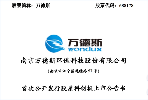 南京萬(wàn)德斯環(huán)保科技股份有限公司距離登陸科創(chuàng)板上市更進(jìn)一步。 12月23日晚間,萬(wàn)德斯發(fā)布科創(chuàng)板上市招股意向書(shū)、上市發(fā)行安排及初步詢(xún)價(jià)公告,正式啟動(dòng)招股。發(fā)行人股票簡(jiǎn)稱(chēng)“萬(wàn)德斯”,擴(kuò)位簡(jiǎn)稱(chēng)為“萬(wàn)德斯環(huán)保”,股票代碼為“688178&rdquo...